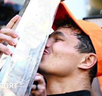 Lando Norris drives an extraordinary race to catch and pass title rival Max Verstappen as his McLaren team-mate Oscar Piastri wins an engrossing Azerbaijan Grand Prix.