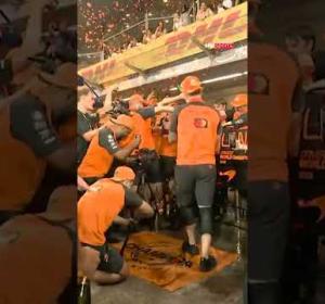 Scenes in the paddock as McLaren celebrate Lando's title ??